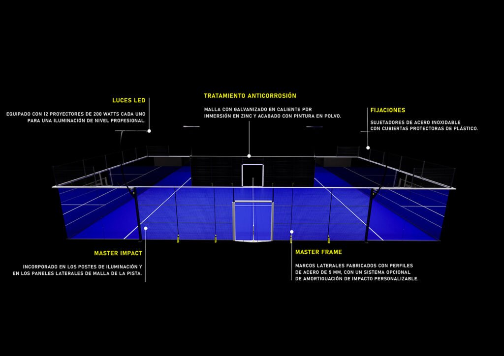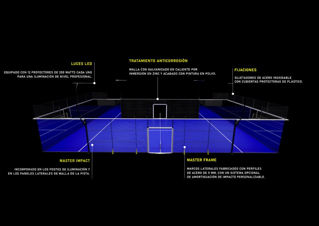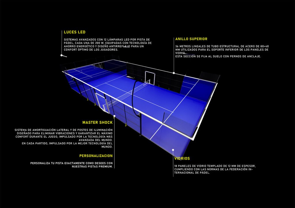 Pista panorámica con presentación impresionante y diseñada para eventos de alta competición y clubes con las más altas prestaciones.