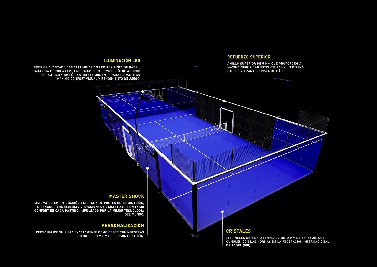 Pista ampliamente utilizada para competencias Premier Padel, World Padel Tour, alto trafico y todo tipo de usos.